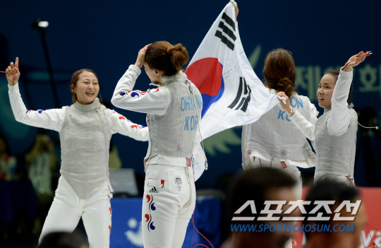 [AG포토] 자랑스런 여자 검객들, 태극기 들고 환호!