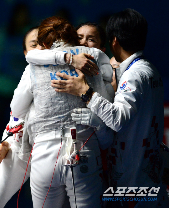 [AG포토] 남현희, 동료들 부둥켜 안고 감격!