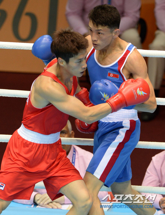 2014 인천아시안게임 복싱 60Kg 라이트급에 출전한 한순철이 32강에서 북한의 한상령과 맞대결을 펼쳤다. 24일 인천 선학체육관에서 열린 경기에서 한순철이 판정승을 거뒀다. 접전을 펼치는 한순철과 한상령의 모습.