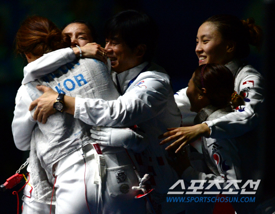 [AG포토] 금메달 감격, 부둥켜 안은 여자 펜싱 선수들!