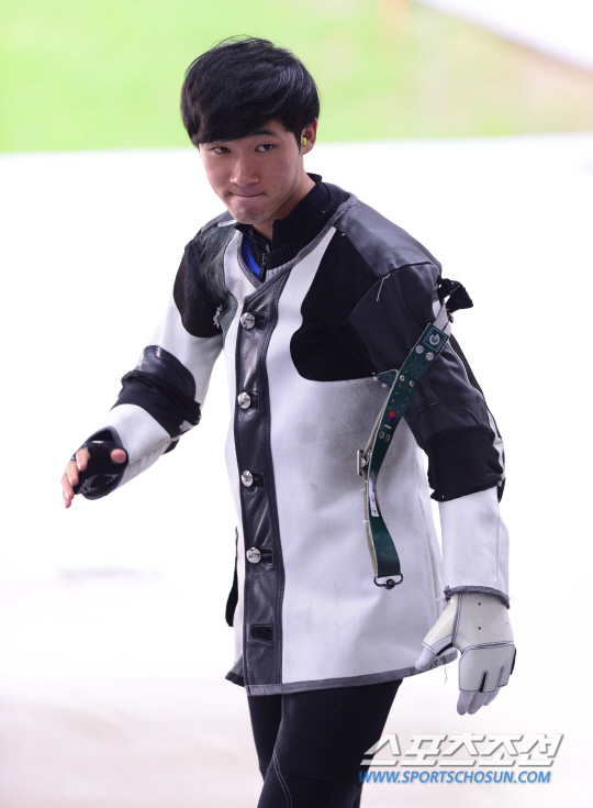 25일 오후 인천 옥련국제사격장에서 2014 인천 아시안게임 사격 남자 50M 소총복사 결선 경기가 열렸다. 개인전 결선에서 탈락한 한국의 유재진이 관중들에게 인사하고 있다.