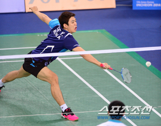 25일 오후 인천 계양체육관에서 2014 인천 아시안게임 배드민턴 남자 복식 16강전 한국과 홍콩의 경기가 열렸다. 한국 이용대가 홍콩의 공격을 받아내고 있다.