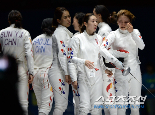 한국 여자 펜싱대표팀(신아람, 최인정, 최은숙, 김명선)이 2014 인천아시안게임 펜싱 여자 에페 단체전 결승에 출전했으나 아쉽게도 금메달 사냥엔 실패했다. 24일 고양체육관에서 열린 펜싱 여자 에페 단체전 결승, 한국과 중국의 경기에서 패하며 은메달을 획득한 선수들이 아쉬워하고 있다.