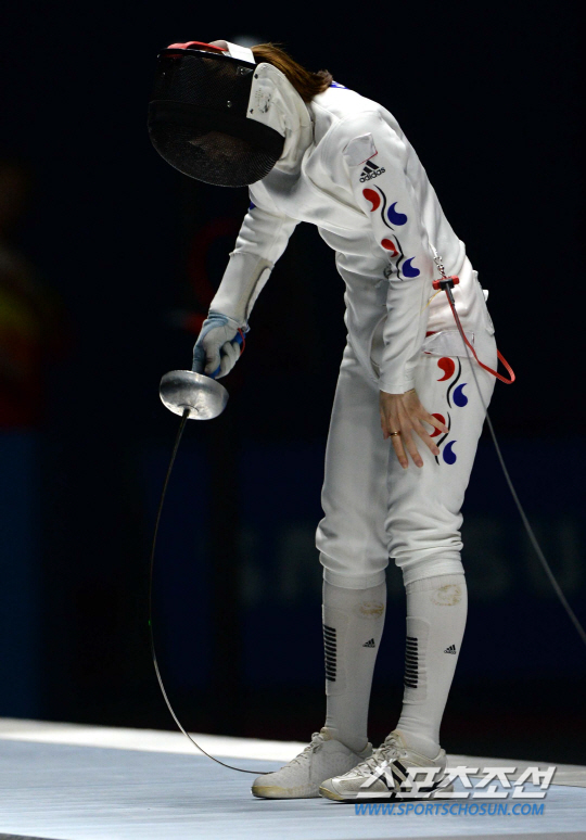 한국 여자 펜싱대표팀(신아람, 최인정, 최은숙, 김명선)이 2014 인천아시안게임 펜싱 여자 에페 단체전 결승에 출전했으나 아쉽게도 금메달 사냥엔 실패했다. 24일 고양체육관에서 열린 펜싱 여자 에페 단체전 결승, 한국과 중국의 경기에서 신아람이 공격을 실패한 후 아쉬워하고 있다.