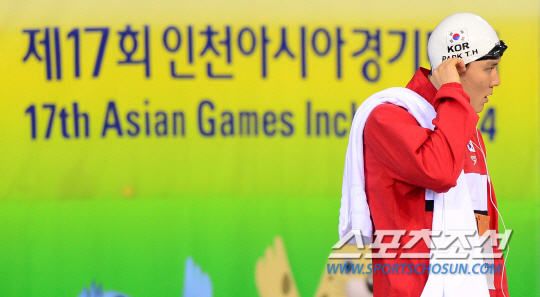 25일 인천 문학박태환수영장에서 2014인천아시아경기대회 남자 수영 100m 결승전 경기가 열렸다. 예선 전체 1위로 통과한 박태환은 4번 레인을 배정받았고, 예선에서 2위에 오른 일본의 하라다 라마루가 5번 레인, 아시아 기록 보유자인 중국 닝 저타오가 3번 레인에서 경기를 펼쳤다. 박태환이 48초75를 기록해 2위를 차지했다. 중국의 밍 저타오가 47초70으로 금메달을 목에 걸었다. 경기를 위해 나서고 있는 박태환.