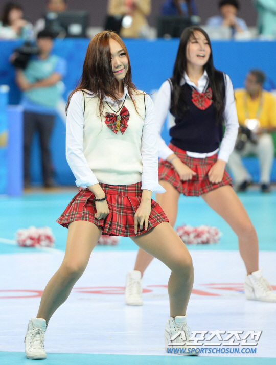 대한민국 치어리더들이 25일 인천 선학체육관에서 열린 2014인천아시안게임 남자핸드볼 본선에서 한국과 이란의 경기에서 신나는 응원전을 펼치고 있다.
