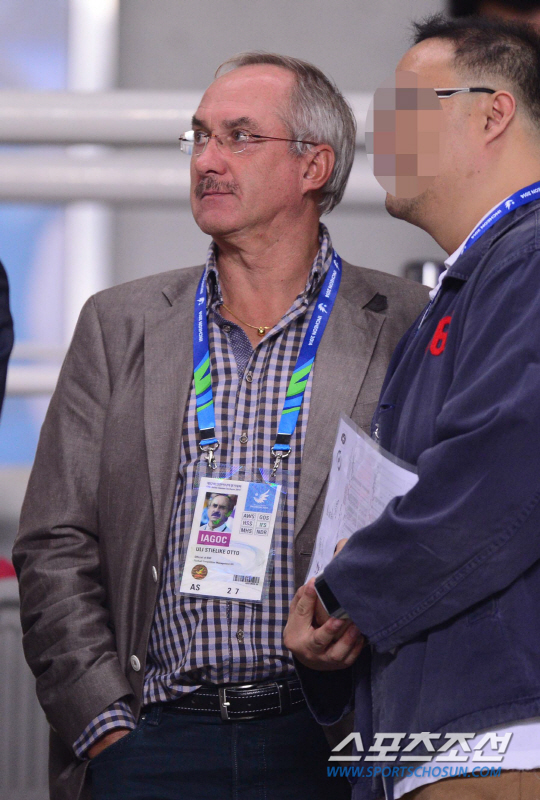 25일 오후 경기도 고양시 고양종합운동장에서 2014 인천 아시안게임 남자 축구 한국과 홍콩의 경기가 열렸다. A대표팀 슈틸리케 감독이 관계자들과 이야기를 나누고 있다.