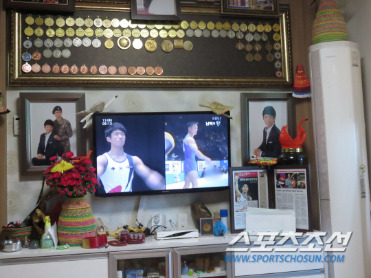 식사후 둘러앉은 TV 앞, 마침 '남북 도마의 신' 양학선과 리세광을 비교하는 뉴스가 흘러나왔다. 담소를 나누던 부부가 뉴스에 귀를 쫑긋 세웠다. 어머니가 말했다. "저 애기도 아주 잘한다던데….. 우리 학선이하고 똑같이, 아주 어려운 기술을 뛴다던데…. 그래도 나는 우리 아들 믿으니까." 하얀 도화지에 '사랑한다 우리아들!'을 또박또박 써내려간 후 어머니는 환하게 웃었다 . 고창=전영지 기자 sky4us@sportschosun.com