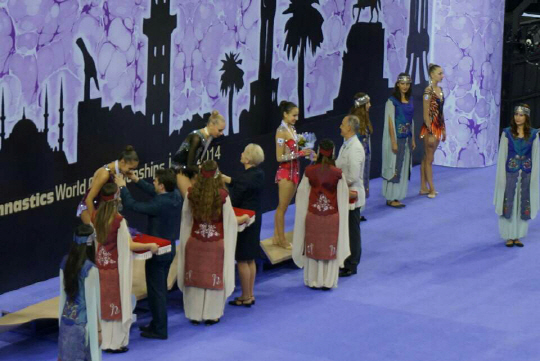 '리듬체조 요정' 손연재(20·연세대)가 세계선수권에서 생애 첫 메달을 목에 걸었다. 손연재는 23일(이하 현지시간) 터키 이즈미르에서 열린 국제체조연맹(FIG) 2014 리듬체조 세계선수권 후프 결선에서 17.966점을 획득하며, 야나 쿠드랍체바(18.816점), 마르가리타 마문(18.450점)에 이어 동메달을 획득했다. 한국 리듬체조 사상 세계선수권 첫 메달이다. 러시아 최강 에이스 쿠드랍체바, 마문의 뒤를 이었다. 인천아시안게임 최대 경쟁자로 꼽히는 중국의 덩센위에를 압도하며 금메달 전망을 밝혔다. 손연재는 두번째 종목인 볼 결선에서는 17.733점으로 5위에 올랐다.