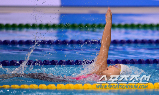 26일 오전 인천 문학박태환수영장에서 2014 인천 아시안게임 수영 여자 배영 200m 예선이 열렸다. 한국 이다린이 힘차게 역영하고 있다.