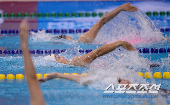 26일 오전 인천 문학박태환수영장에서 2014 인천 아시안게임 수영 여자 배영 200m 예선이 열렸다. 한국 이다린이 멋진 출발을 하고 있다.