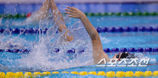 26일 오전 인천 문학박태환수영장에서 2014 인천 아시안게임 수영 여자 배영 200m 예선이 열렸다. 한국 이도륜이 힘차게 역영하고 있다.