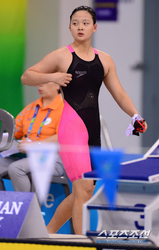 26일 오전 인천 문학박태환수영장에서 2014 인천 아시안게임 수영 여자 배영 200m 예선이 열렸다. 경기를 마친 한국 이도륜이 경기장을 떠나고 있다.