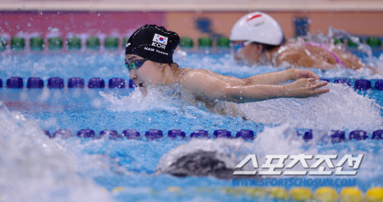 26일 오전 인천 문학박태환수영장에서 2014 인천 아시안게임 수영 여자 개영혼영 200m 예선이 열렸다. 한국 남유선이 힘차게 역영하고 있다.