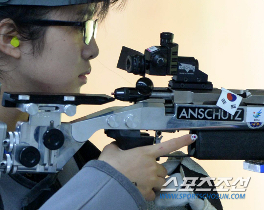 2014 인천 아시안게임 사격 여자 50m 소총.3자세 본선 경기가 26일 인천 옥련국제사격장에서 열렸다. 경기에 출전한 김설아가 호흡을 가다듬고 있다.