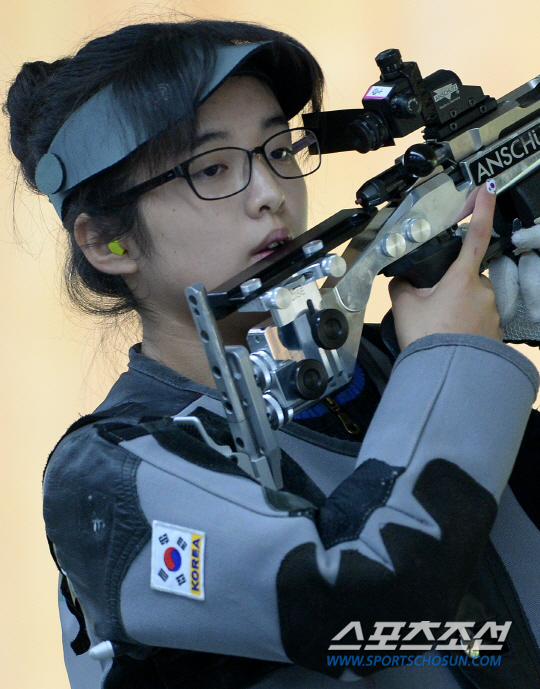 2014 인천 아시안게임 사격 여자 50m 소총.3자세 본선 경기가 26일 인천 옥련국제사격장에서 열렸다. 경기에 출전한 김설아가 호흡을 가다듬고 있다.