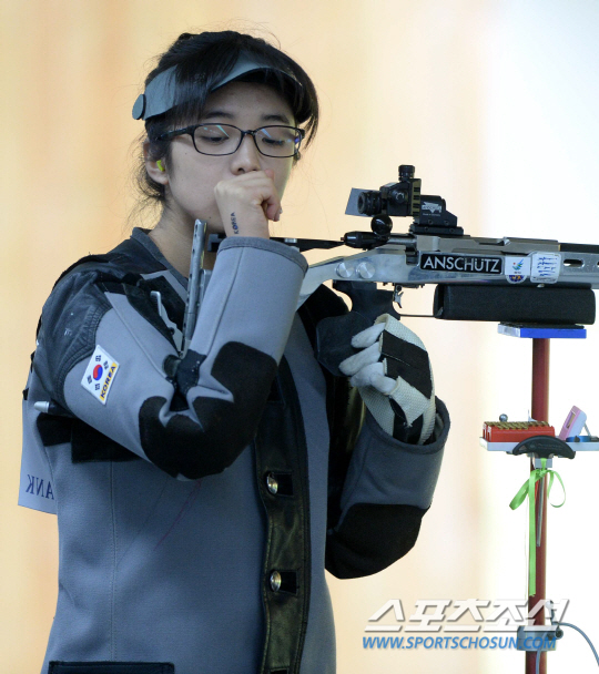 2014 인천 아시안게임 사격 여자 50m 소총.3자세 본선 경기가 26일 인천 옥련국제사격장에서 열렸다. 경기에 출전한 김설아가 호흡을 가다듬고 있다.