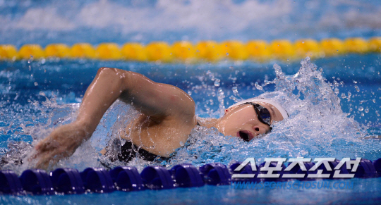 26일 오전 인천 문학박태환수영장에서 2014 인천 아시안게임 수영 여자 개영혼영 200m 예선이 열렸다. 한국 김서영이 힘차게 역영하고 있다.