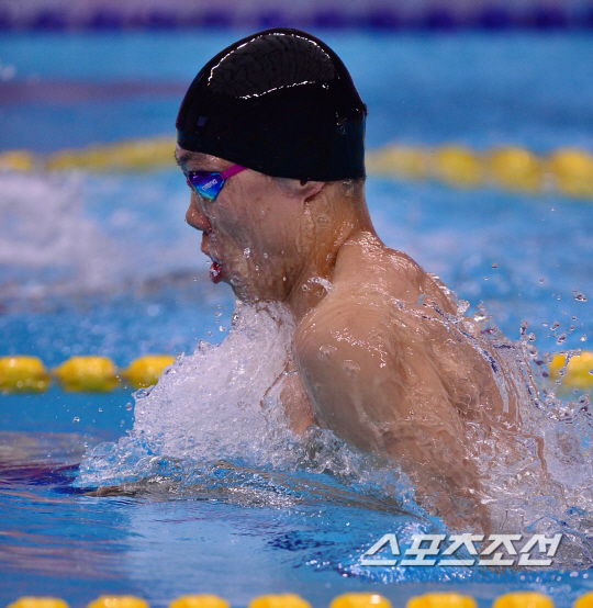 26일 오전 인천 문학박태환수영장에서 2014 인천 아시안게임 남자 혼계영 4X100m 경기가 열렸다. 한국 주장훈이 역영하고 있다.