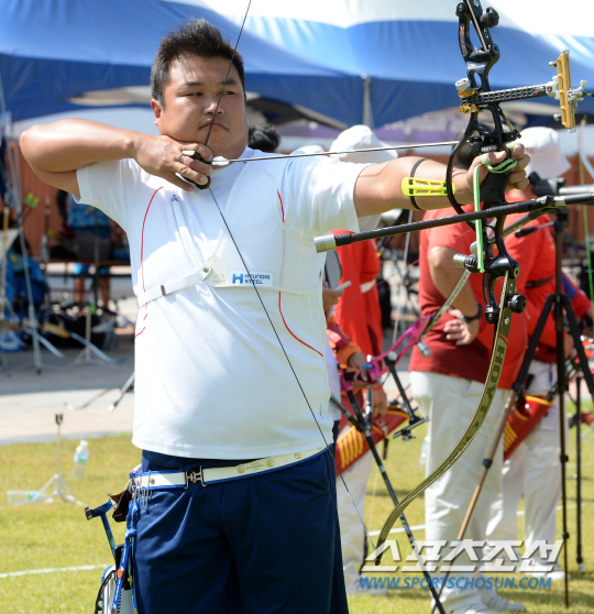 2014 인천아시안게임 양궁 리커브 남자경기 출전을 앞둔 김우진, 오진혁, 구본찬, 이승윤이 25일 인천 계양아시아드양궁장에서 훈련을 하고 있다. 인천=허상욱 기자 wook@sportschosun.com