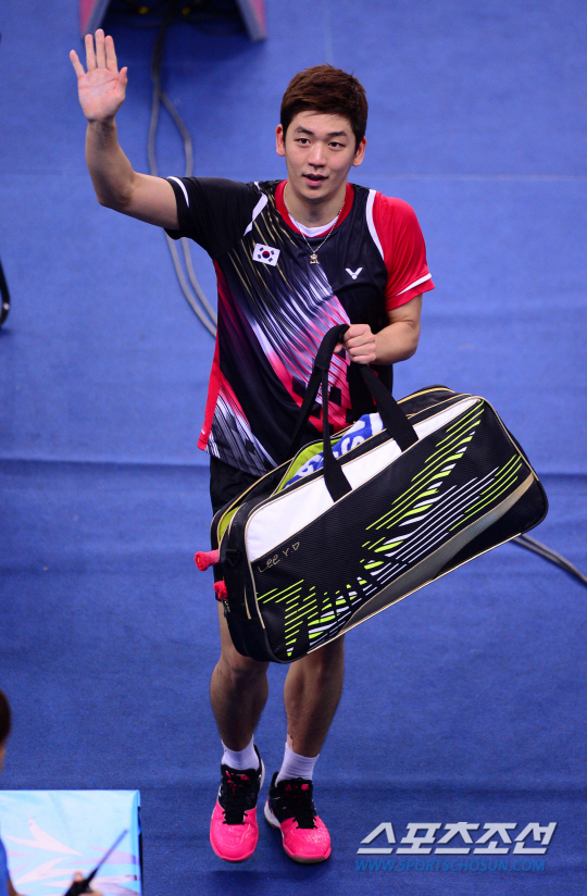 26일 오후 인천 계양체육관에서 2014 인천 아시안게임 배드민턴 남자 복식 8강전 한국과 인도네시아의 경기가 열렸다. 한국 이용대가 인도네시아에 승리한 후 관중들에게 인사하고 있다.