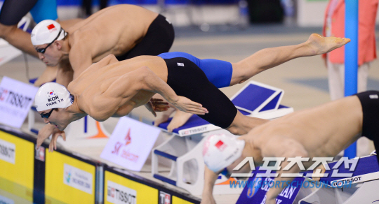26일 오후 인천 문학박태환수영장에서 2014 아시안게임 남자 자유형 1500m 결승 경기가 열렸다. 한국 박태환이 다이빙을 하고 있다.