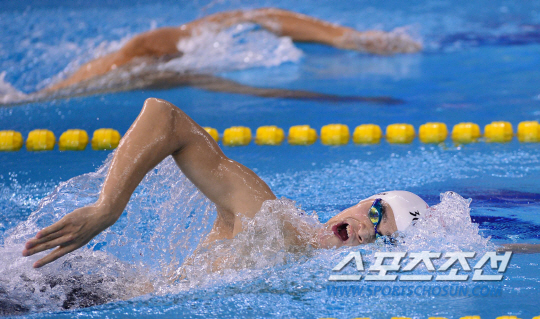 26일 오후 인천 문학박태환수영장에서 2014 아시안게임 남자 자유형 1500m 결승 경기가 열렸다. 중국 쑨양이 역영하고 있다.