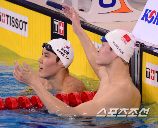[AG포토] 대인배 쑨양 '박태환에게 박수를~'