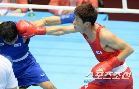 2014 인천 아시안게임 복싱 남자 60Kg 라이트급 한순철이 태국의 사이롬 아디와 경기를 펼쳤다. 26일 인천 선학체육관에서 열린 한순철과 태국의 사이롬 아디의 16강전 경기에서 한순철이 판정승을 거뒀다. 접전을 벌이는 두 선수의 모습.