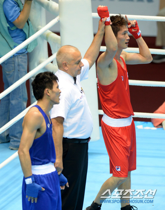 2014 인천 아시안게임 복싱 남자 60Kg 라이트급 한순철이 태국의 사이롬 아디와 경기를 펼쳤다. 26일 인천 선학체육관에서 열린 한순철과 태국의 사이롬 아디의 16강전 경기에서 한순철이 판정승을 거뒀다. 승리가 확정되자 기뻐하는 한순철의 모습.