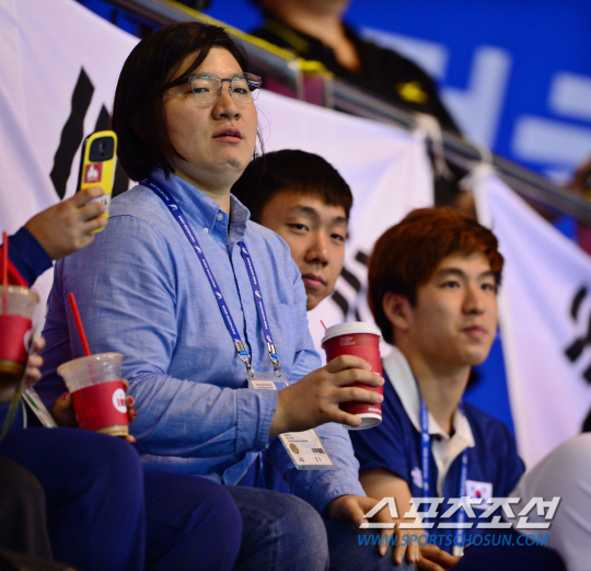 26일 오후 인천 문학박태환수영장에서 2014 아시안게임 남자 자유형 1500m 결승 경기가 열렸다. 장미란이 관중석에서 경기를 관전하고 있다.