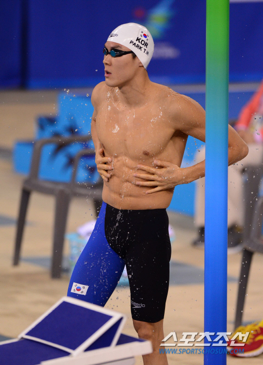 26일 오후 인천 문학박태환수영장에서 2014 아시안게임 남자 자유형 1500m 결승 경기가 열렸다. 경기 전 박태환이 몸에 물을 묻히고 있다.