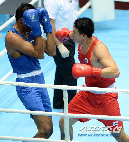 2014 인천 아시안게임 복싱 남자 - 91㎏ 헤비급 박남형이 인도의 암리프릿 사이와 경기를 펼쳤다. 26일 인천 선학체육관에서 열린 박남형과 인도의 암리프릿 사이의 경기에서 박남형이 판정승을 거뒀다. 접전을 벌이는 두 선수의 모습.