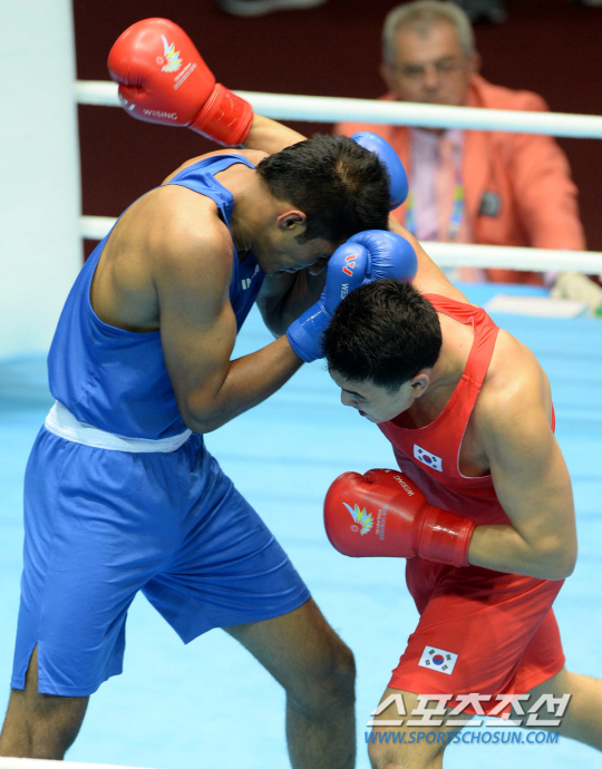 2014 인천 아시안게임 복싱 남자 - 91㎏ 헤비급 박남형이 인도의 암리프릿 사이와 경기를 펼쳤다. 26일 인천 선학체육관에서 열린 박남형과 인도의 암리프릿 사이의 경기에서 박남형이 판정승을 거뒀다. 접전을 벌이는 두 선수의 모습.