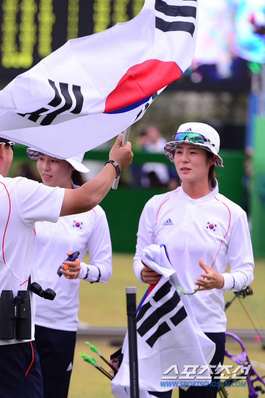27일 오후 인천 계양아시아드 양궁경기장에서 2014 아시안게임 양궁 컴파운드 여자 단체 결승 한국과 대만의 경기가 열렸다. 금메달을 차지한 한국 최보민이 기뻐하고 있다.