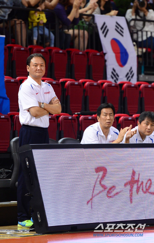 27일 오후 인천 삼산월드체육관에서 2014 아시안게임 남자 농구 한국과 필리핀의 경기가 열렸다. 한국 유재학 감독이 경기를 지켜보고 있다.