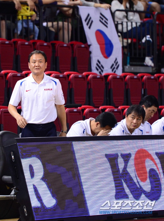 27일 오후 인천 삼산월드체육관에서 2014 아시안게임 남자 농구 한국과 필리핀의 경기가 열렸다. 한국 유재학 감독이 경기를 지켜보고 있다.
