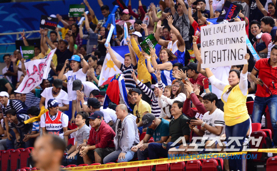 27일 오후 인천 삼산월드체육관에서 2014 아시안게임 남자 농구 한국과 필리핀의 경기가 열렸다. 필리핀 응원단들이 열띤 응원을 펼치고 있다.