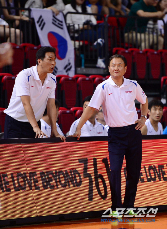 27일 오후 인천 삼산월드체육관에서 2014 아시안게임 남자 농구 한국과 필리핀의 경기가 열렸다. 한국 유재학 감독이 선수들의 경기를 지켜보고 있다.