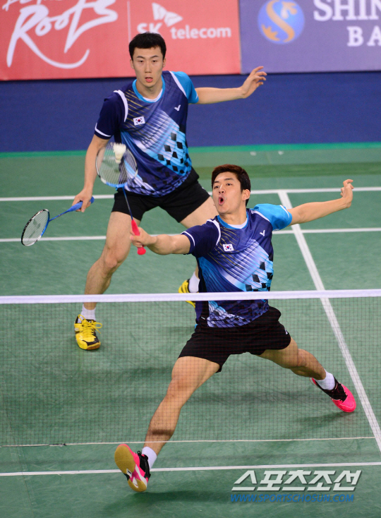 27일 오후 인천 계양체육관에서 2014 인천 아시안게임 배드민턴 남자 복식 4강전 한국과 말레이시아의 경기가 열렸다. 이용대가 말레이시아의 공격을 받아내고 있다.