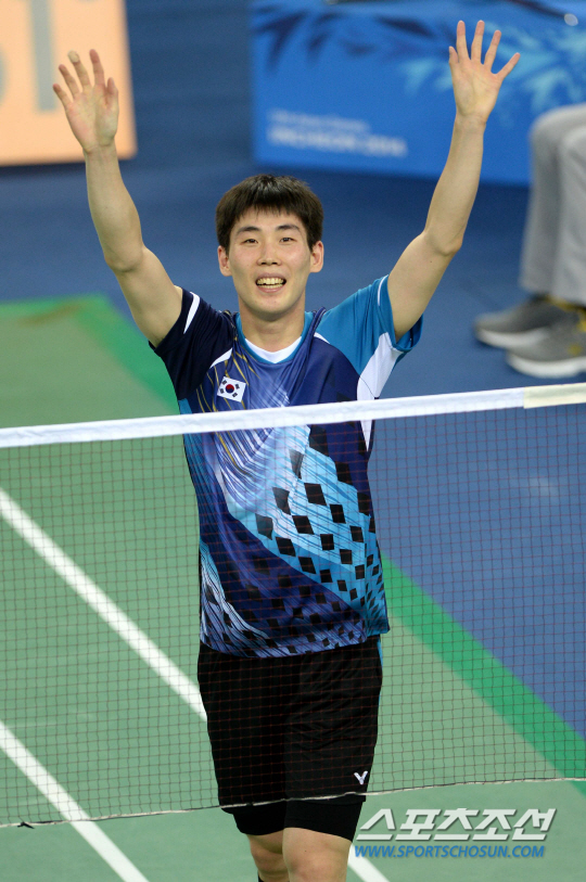 2014 인천아시안게임 배드민턴 남자 단체전 결승 23일 인천 계양체육관에서 열렸다. 1경기를 승리한 손완호가 경기를 끝낸 후 환호하고 있다. 인천=허상욱 기자 wook@sportschosun.com/2014.09.23/