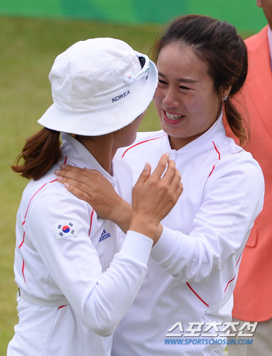 28일 인천 계양아시아드양궁장에서 2014 인천아시아경기대회 여자 양궁 리커브 단체전 경기가 열렸다. 여자 양궁은 1998년 방콕대회부터 2010년 광저우대회까지 4연패에 성공했다. 이번에 금메달을 따며 5연패를 달성했다. 어깨 부상으로 출전권을 양보한 주현정(오른쪽)이 금메달이 확정되자 동료들과 함께 뜨거운 눈물을 흘리고 있다.
