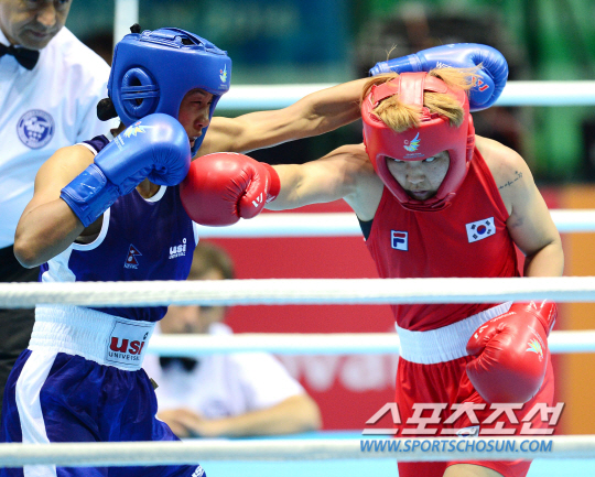 인천아시안게임 복싱 여자 60KG급 8강전이 28일 인천 선학체육관에서 열렸다. 한국 박진아가 네팔 라나와 대결을 펼치고 있다. 박진아는 4회 TKO로 4강에 진출했다.