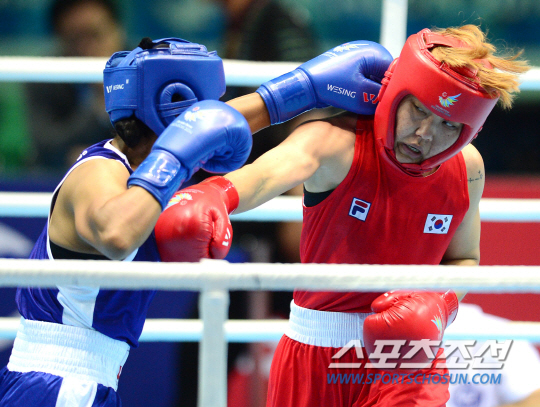 인천아시안게임 복싱 여자 60KG급 8강전이 28일 인천 선학체육관에서 열렸다. 한국 박진아(오른쪽)가 네팔 라나와 대결을 펼치고 있다. 박진아는 4회 TKO로 4강에 진출했다.