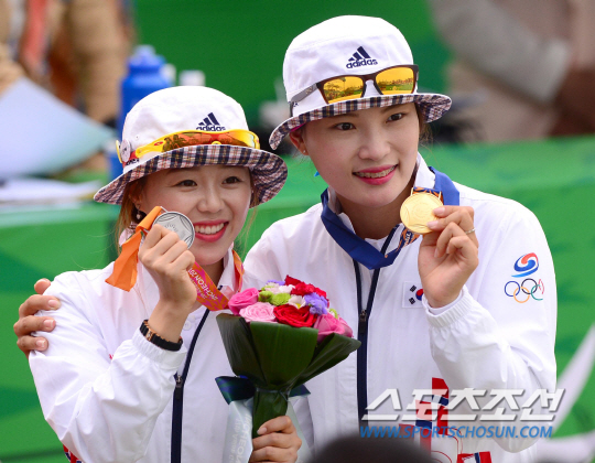 [AG포토] 정다소미-장혜진 '금, 은메달 다정하게'