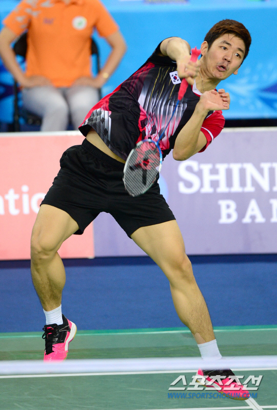 28일 인천 계양체육관에서 2014 인천아시아경기대회 남자 배드민턴 단체전 결승 경기가 열렸다. 세계랭킹 1위 이용대-유연성 조는 모하메드 아산-헨드라 세티아완(인도네시아) 조와 금메달 놓고 마지막 승부를 펼쳤다. 이용대가 화려한 스매싱 공격을 선보이고 있다.