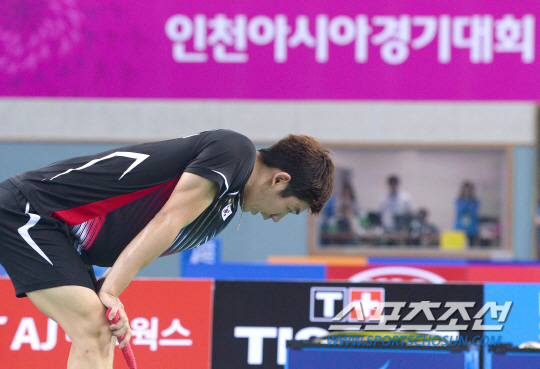 28일 인천 계양체육관에서 2014 인천아시아경기대회 남자 배드민턴 단체전 결승 경기가 열렸다. 세계랭킹 1위 이용대-유연성 조는 모하메드 아산-헨드라 세티아완(인도네시아) 조와 금메달 놓고 마지막 승부를 펼쳤다. 이용대-유연성 조가 세트스코어 2대1로 패배했다. 마지막 실점을 허용하고 아쉬움에 고개를 떨구는 이용대.