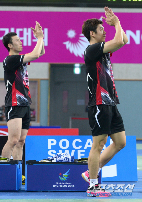 28일 인천 계양체육관에서 2014 인천아시아경기대회 남자 배드민턴 단체전 결승 경기가 열렸다. 세계랭킹 1위 이용대-유연성 조는 모하메드 아산-헨드라 세티아완(인도네시아) 조와 금메달 놓고 마지막 승부를 펼쳤다. 이용대-유연성 조가 세트스코어 2대1로 패배했다. 경기를 마치고 팬들에게 인사를 하고 있는 이용대-유연성.