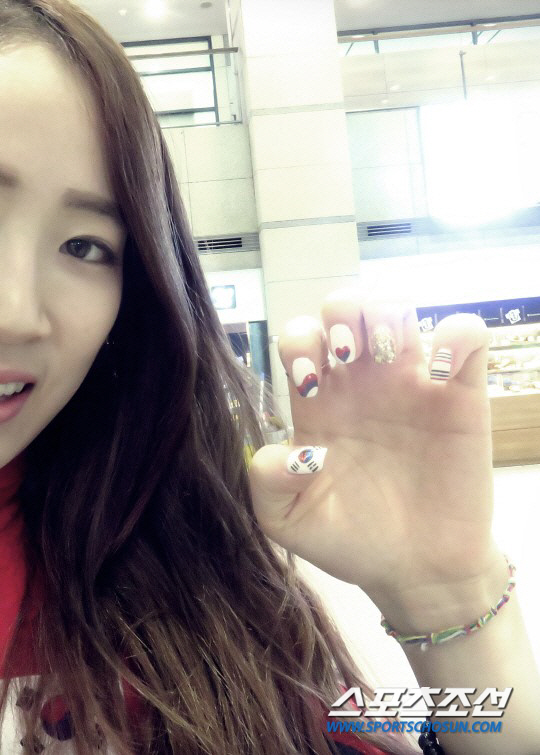 소치동계올림픽 2연패에 성공한 '빙속여제' 이상화는 네일아트 마니아다. "운동을 하다보면 멋을 낼 수 있는 부분이 손톱밖에 없다. 스트레스를 받을 때 네일아트를 받으면 기분이 좋아진다"고 했다. 레드, 골드의 조합의 화려한 네일은 시상대에서 전세계 스포츠팬들의 이목을 끌었다. 골드펄, 스마일리, 노란리본 장식으로 금메달을 향한 염원을 담아냈다.