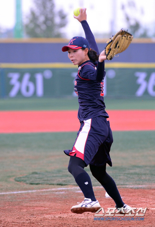 29일 오후 인천 송도LNG야구장에서 2014 인천 아시안게임 소프트볼 예선전 한국과 일본의 경기가 열렸다. 한국 박수연이 일본 선수를 상대로 힘차게 볼을 던지고 있다.